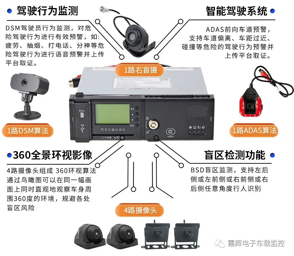 本地360環(huán)視與智能視頻主動(dòng)安全一體化,實(shí)現(xiàn)DSM、ADAS、BSD、環(huán)視算法集成到一臺(tái)設(shè)備,全方位滿足駕駛員行使輔助以及駕駛員不良行為駕駛習(xí)慣的監(jiān)控。